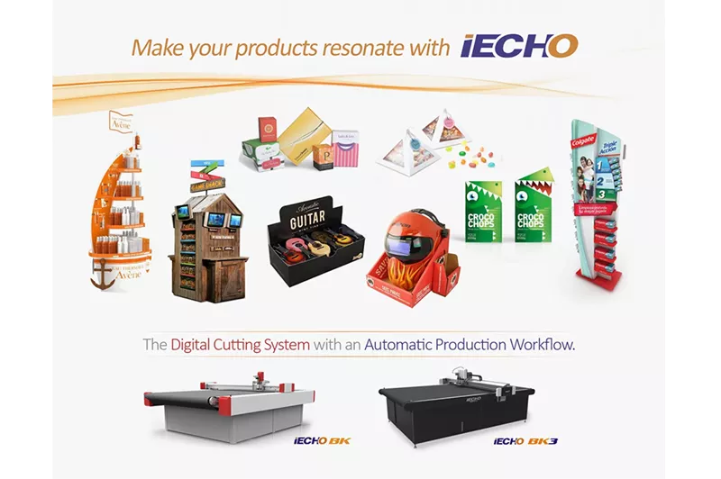 The iECHO High Speed Digital Cutting Systems supply the best solution to make sampling and short-run production in variety of industries. It is equipped with variety of knives and pens to meet different material cutting. It can realize high speed, high precision full cutting, half cutting and punching, kiss cutting, milling, creasing and marking with its stacker and collecting system. It can complete the material feeding and collecting quickly. It is quite suitable for sample making, short run and mass production in signages, advertising, printing and packaging industries.